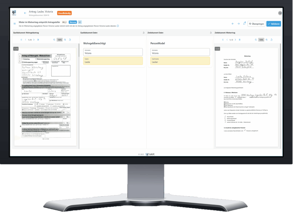 Mit unserer KI-gestützten Anwendung wird die Wohngeldantragsbearbeitung für den Sachbearbeiter radikal vereinfacht:
